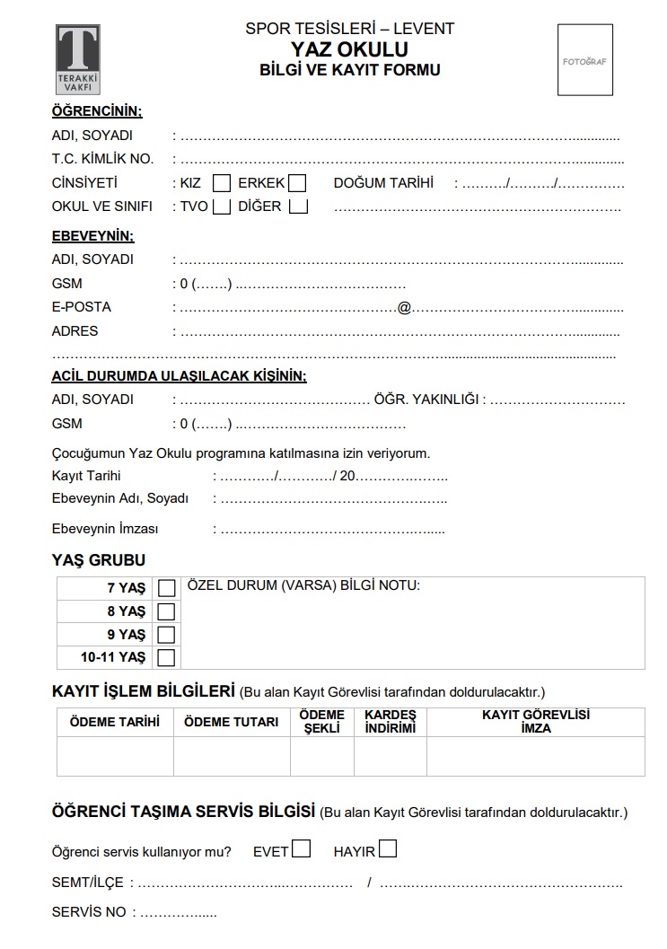 LEVENT Yaz Okulu Bilgi ve Kayıt Formu