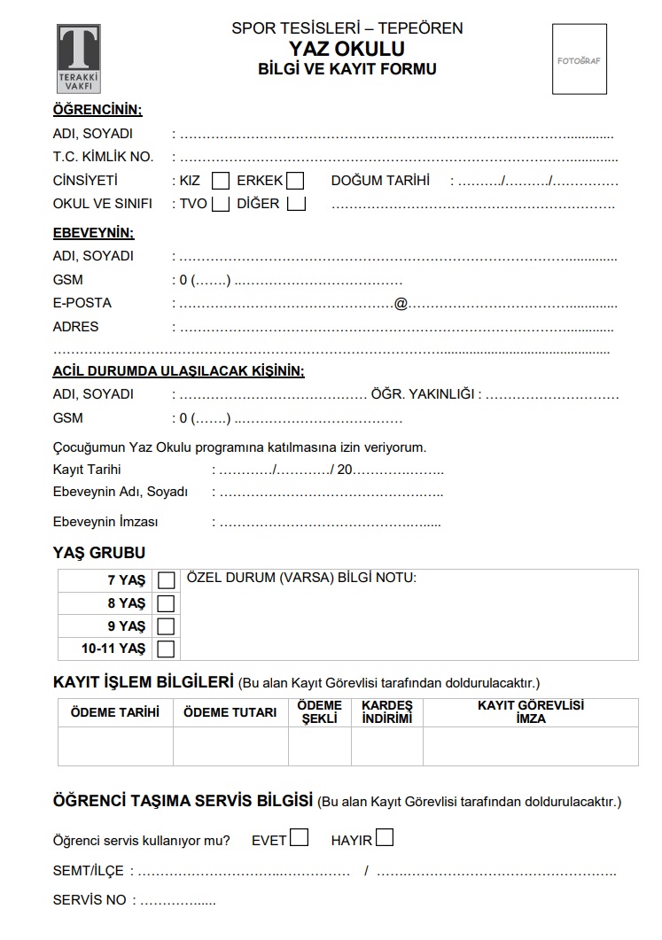 TEPEÖREN Yaz Okulu Bilgi ve Kayıt Formu